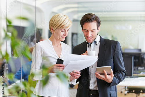 Geschäftsleute im Büro mit Tablet PC und Akten
