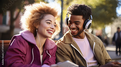 Group of joyful teenagers enjoying outdoors, diverse and happy