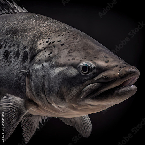 Big asian carp fish as dark studio portrait (Generative AI)