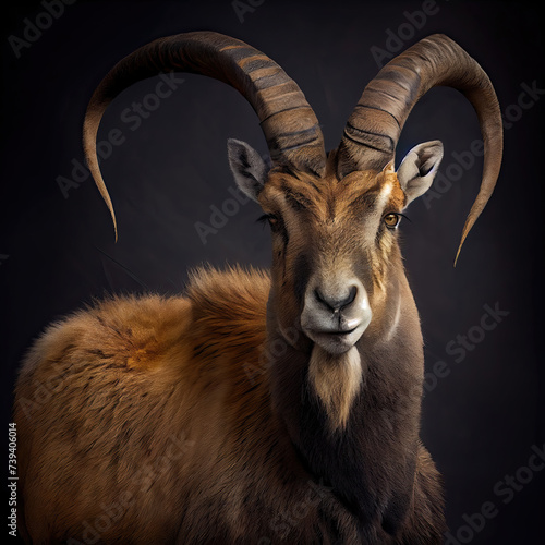 Elegant Alpine Goat Portrait Against Dark Studio Background