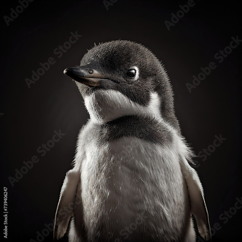 Elegant portrait of a king penguin showcasing its vibrant plumage in a professional studio setting, highlighting its majestic features and graceful presence.