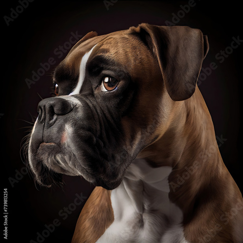 Regal Boxer Dog Portrait with Intense Gaze in Studio