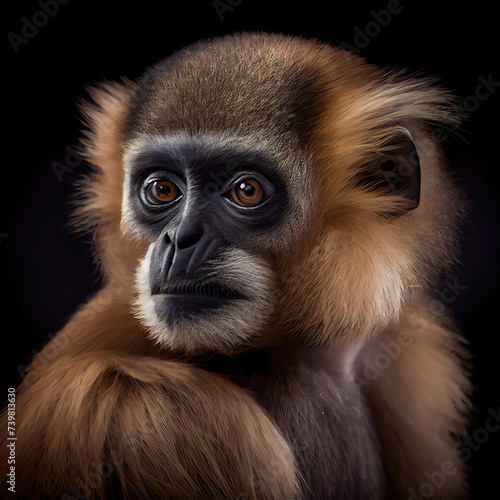 Captivating Gibbon Portrait Against Dark Background in Studio