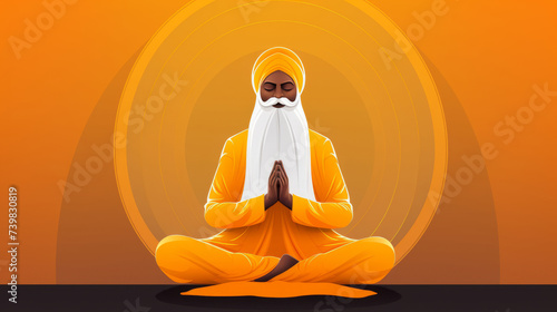 Serene meditation with a man in traditional Sikh attire on a vibrant orange background