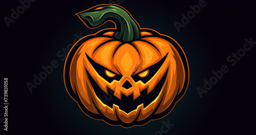 Glowing carved Halloween pumpkin in a dark eerie setting