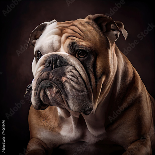 Majestic Australian Bulldog Portrait with Dark Artistic Background