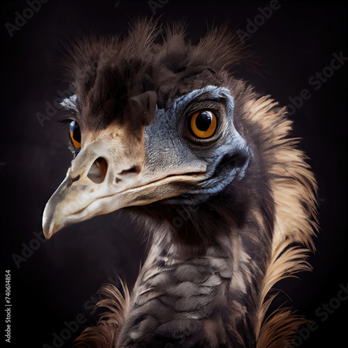 Majestic Emu Portrait with Intense Gaze in Studio Setting