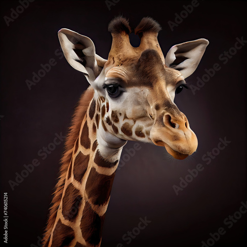 Cute portrait of giraffe in studio setting as wildlife illustration