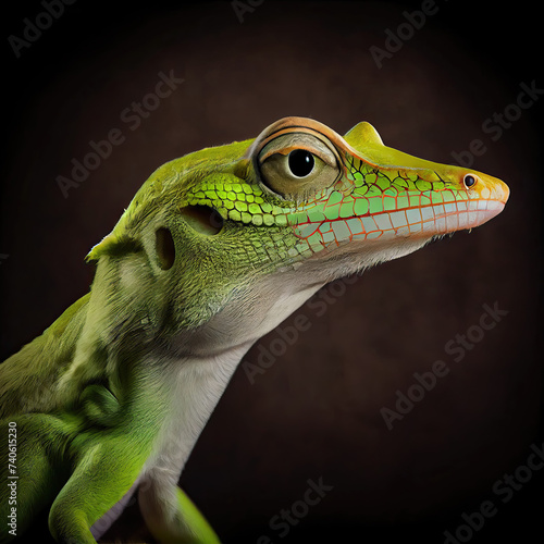 Green Anole Lizard  Close-Up Portrait in a Professional Studio Setting
