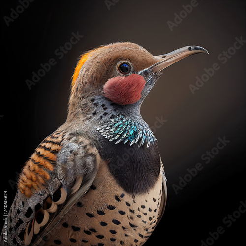 Vibrant hummingbird in studio with colorful background, showcasing detailed feathers and graceful flight