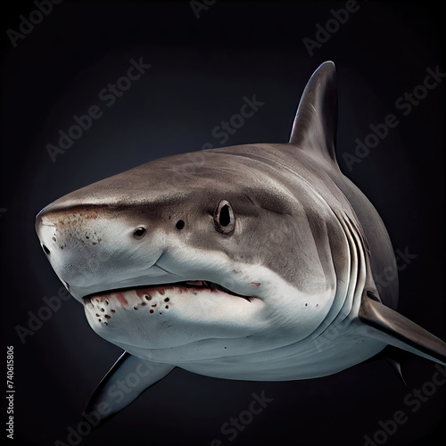 Close-Up of a Great White Shark in a Dark Ocean Studio