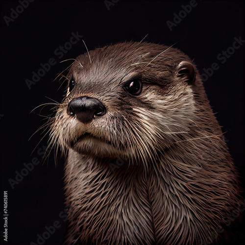 Majestic Otter Animal Portrait in Studio with Dark Background