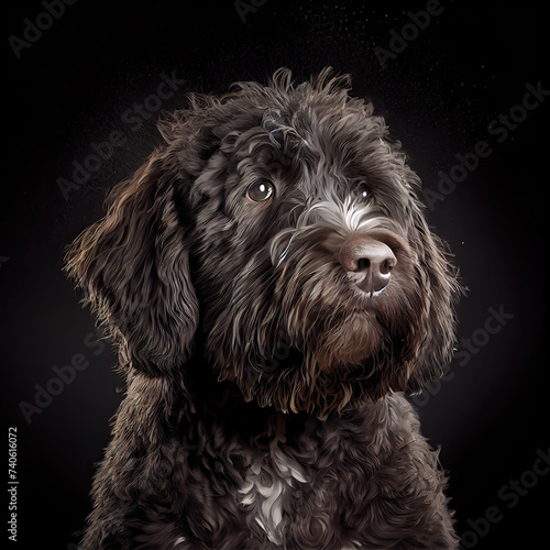 Elegant Black Barbet Dog Portrait With Soulful Eyes in Studio