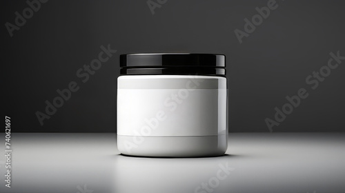 Blank white cosmetic cream jar on a minimalistic black and white background