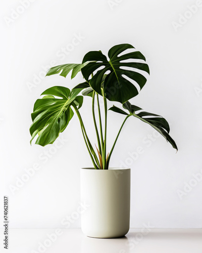 Elegant black matte ceramic vase with green leafy plant isolated on a white background for modern interior decor and design inspiration