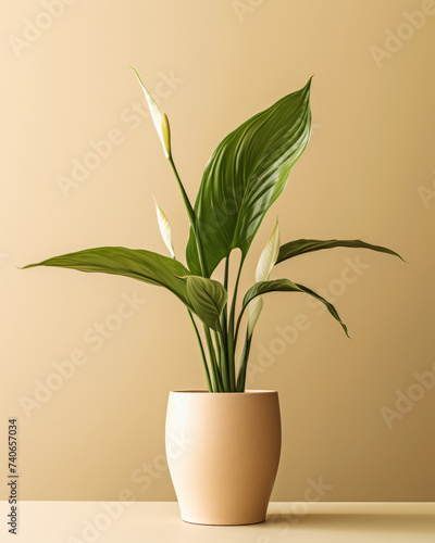 Elegant black matte ceramic vase with green leafy plant isolated on a white background for modern interior decor and design inspiration