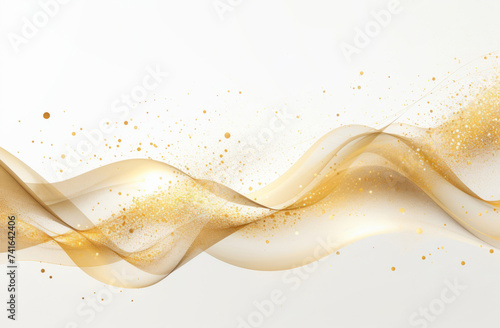 Flowing golden wave shape on white as abstract luxury and festivity background