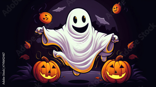 Colorful cartoon Halloween with ghost, pumpkins, and spooky elements