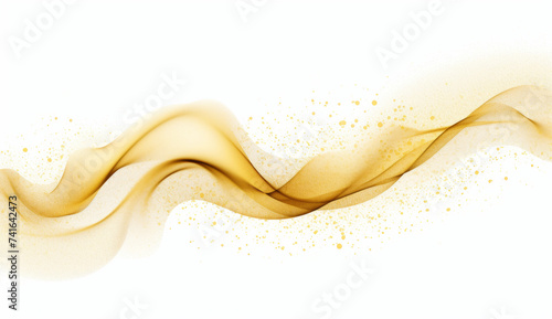 Flowing golden wave shape on white as abstract luxury and festivity background