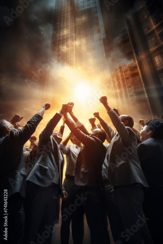 Team of business professionals celebrating success outdoors