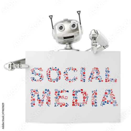 Cute hand-drawn robot sticker with a happy expression and thick white contour