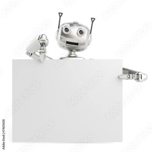 Roboter hält Social Media Schild