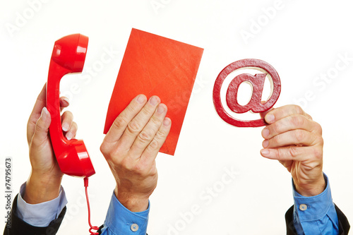 Hände halten Telefon, Brief und Email