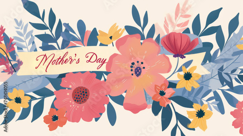 Floral illustration for Mother's Day greeting with pastel flowers and banner