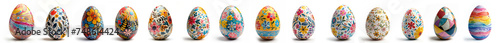Colorful and intricately decorated Easter egg with floral patterns, isolated on a white background, showcasing vibrant spring designs.