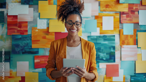 Junge Business Frau mit Tablet Computer am Konferenztisch
