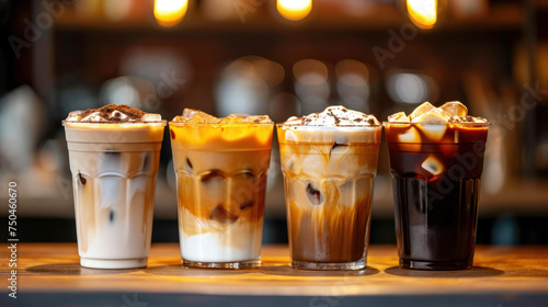 Hand-drawn illustration of a variety of coffee drinks in colorful cups