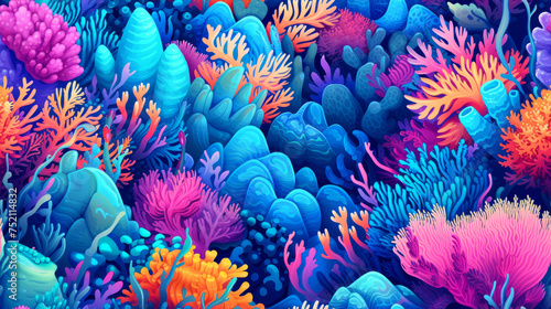 Whimsical underwater scene with playful mermaids, vibrant coral, and tropical fish