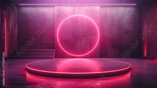 Futuristic neon platforms with glowing holographic effects on a dark background