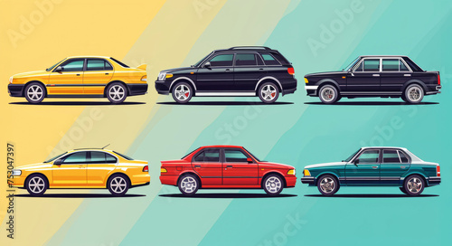 Silhouettes of hatchback cars presented as graphic renderings on white backdrop