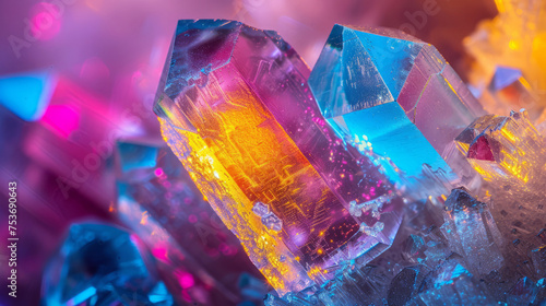 Vibrant rainbow crystals shimmering in ethereal light display on glitter surface