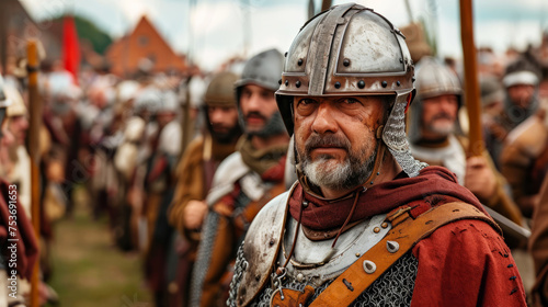 Renaissance street procession with musicians and flag bearers in traditional costumes