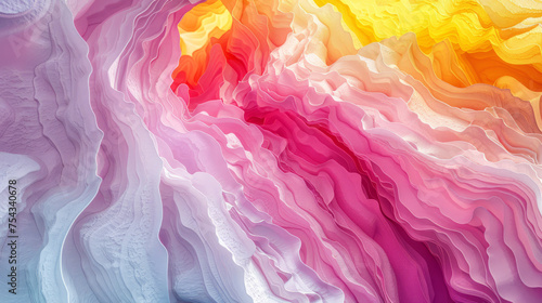 Artistic 3D Rendered Illustration of a Cave with Pink and Yellow Rippled Layers