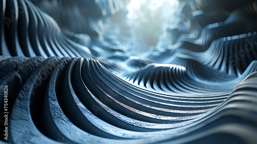 Monochromatic abstract illusionism art with dynamic lines and waves