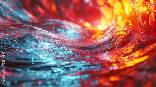 Artistic view of swirling water inside a pipe with colorful reflections and sparkling highlights, creating a dynamic and visually captivating abstract composition