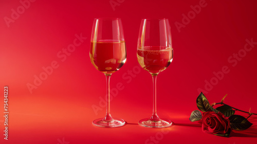 Elegant Valentine's Day scene with rose, ribbon, and champagne glasses
