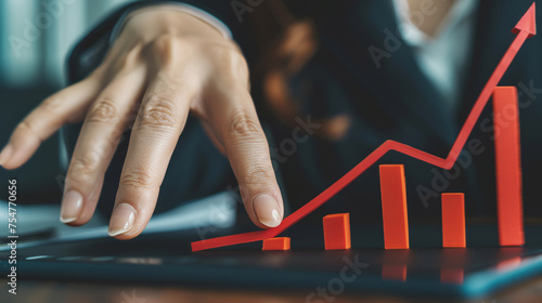 Hand stacking wooden blocks representing a green bar graph for growth and development