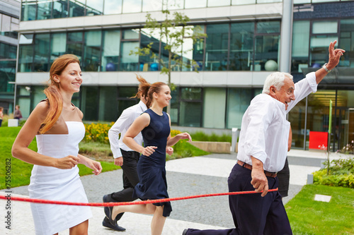 Gruppe Geschälftsleute vor dem Büro im Gehen