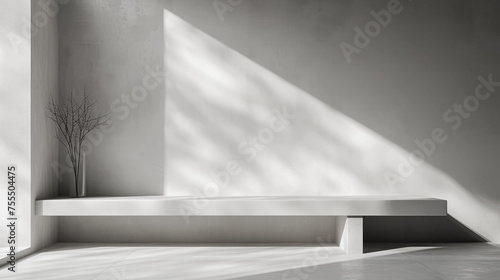 Abstract white light beams casting shadows in a minimalistic and modern empty space