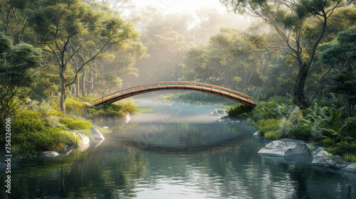 Mountain forest panorama with a serene river and lush green surroundings