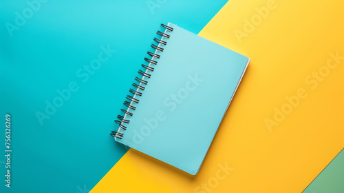 Two checkered spiral notebooks in blue and beige placed on a vibrant yellow background, highlighting a contrast between the colorful covers and the bright surface.