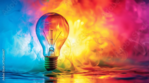 Vibrant energy concept with swirling colors and light bulb