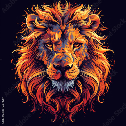 Vibrant stylized illustration of a majestic lion's head with fiery mane