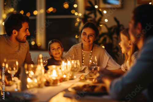 Group of friends laughing and enjoying dinner at outdoor gathering