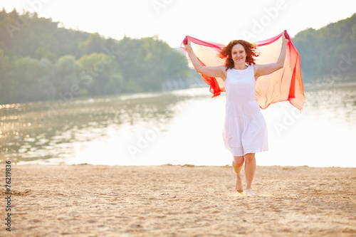 Mädchen mit Tuch läuft am Strand