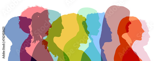 Bunte Köpfe als Silhouetten überlagern sich